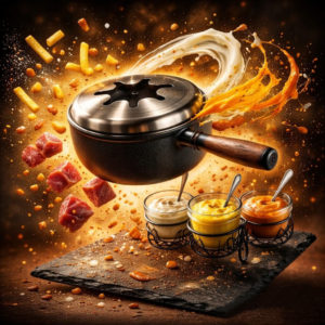 Nos fondues sont accompagnées d'une salade en entrée, frites et sauces maison à volonté